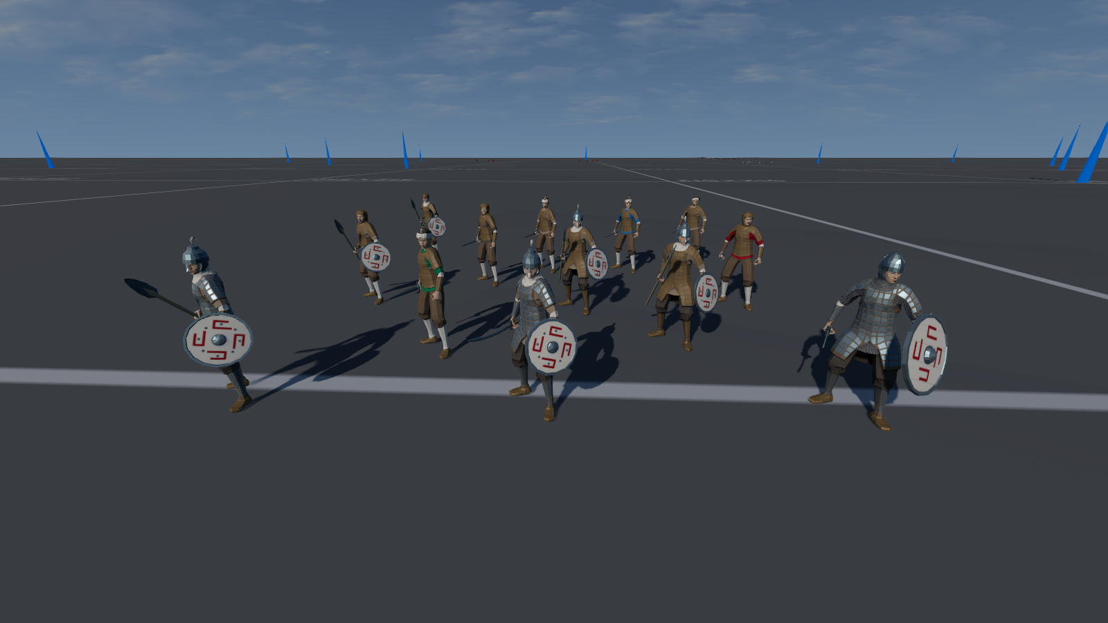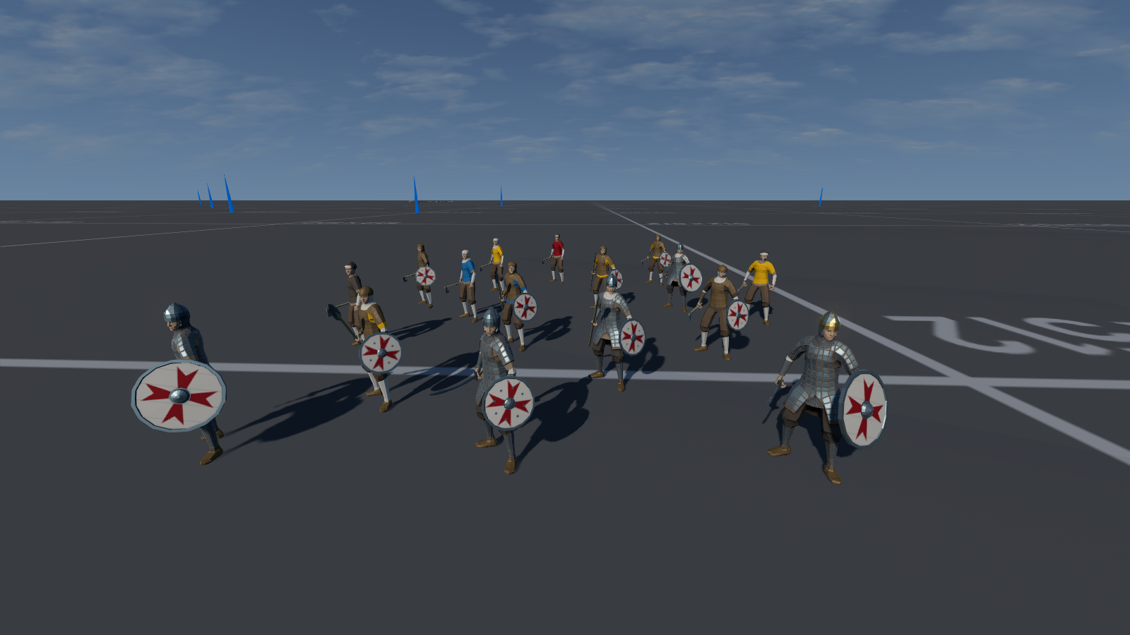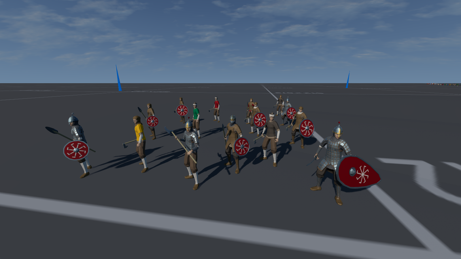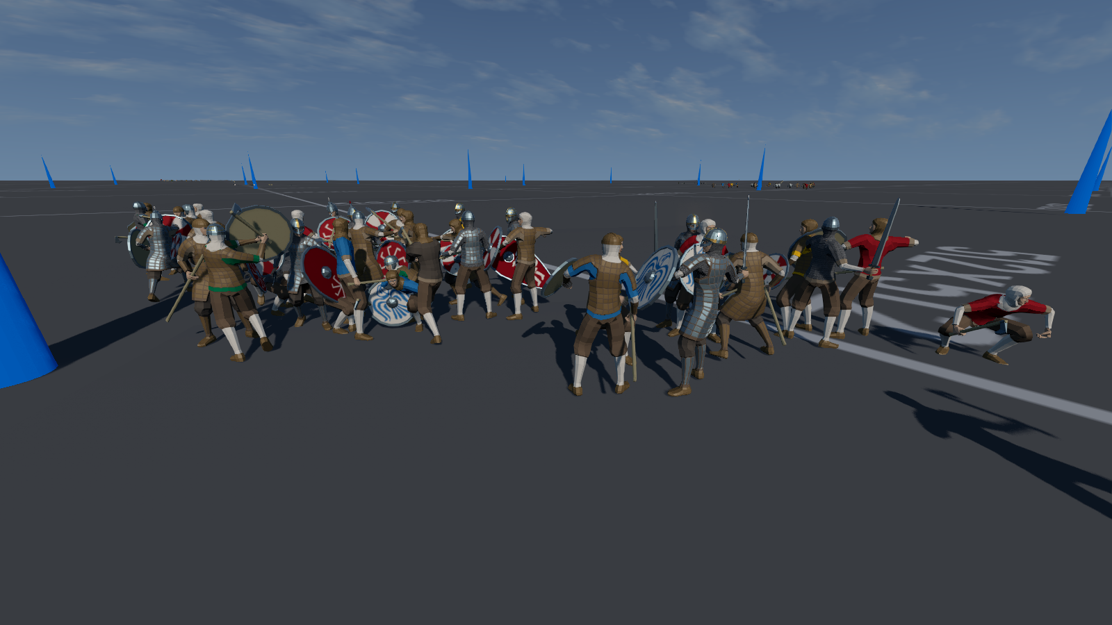 With all the warbands now equipped - at least except for bows as I haven't out the code needed for archery just yet, but it is coming - I needed to bring home the awesomeness of hitting someone with a poleaxe. For this I hunted around for some of the old death animations which I had got for Airship Dragoon and modified them for the new rigging system which my current models use.