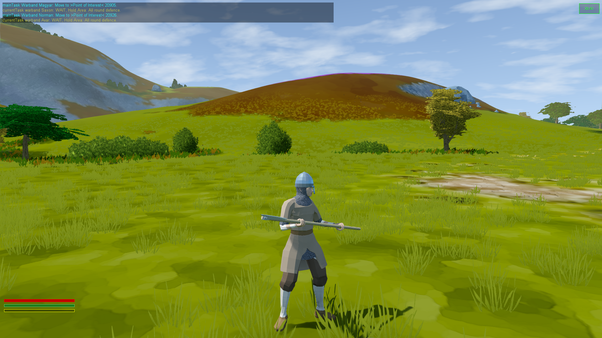 Currently all bows look like crossbows, due to this being the only model and animations I have currently made, whilst I decide on how best to animate traditional bows, with their hold in left and draw with right animations. As my current warband timeline only goes up the 11th Century at the moment, the English warbow/longbow has yet to appear, but researching some historical composite bows for the Magyars, it was interesting to note that they used very light arrows on very strong composite bows to out-range their enemies at the expense of projectiles which were weaker in the strike, and would break when they hit the ground (which of course stops the guy you just missed from picking it up and shooting it back). To this result, the Magyar have by far the longest range (to be honest 400m is kinda pushing it but hey vidya gaemz), but with stopping power only marginly better than a 100m short bow.
